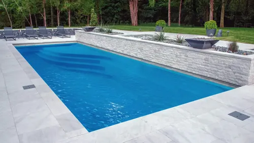 The Grand™ is a striking 40’ fiberglass pool that lives up to its name. With its sleek right-side entry and impressive 8’ deep end, it offers the perfect balance of spirited recreation, quiet relaxation, and sophisticated design.